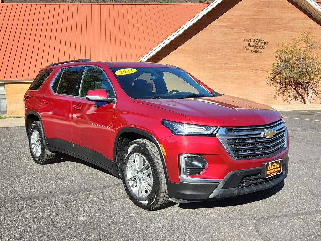 It's time to take a look at our Accident Free 2023 Chevrolet Traverse LT Cloth AWD known for its rewarding capability and upscale Radiant Red Tintcoat appearance! Motivated by a 3.6 Liter V6 supplying 310hp connected to a 9 Speed Automatic transmission that's tuned to take on busy days. This All Wheel Drive SUV also sees nearly 25mpg on the highway with a refined exterior design. Our Traverse is a sleek head-turner with LED lighting, roof rails, bright dual-exhaust outlets, 18-inch alloy wheels, and heated power mirrors with built-in turn signals.
