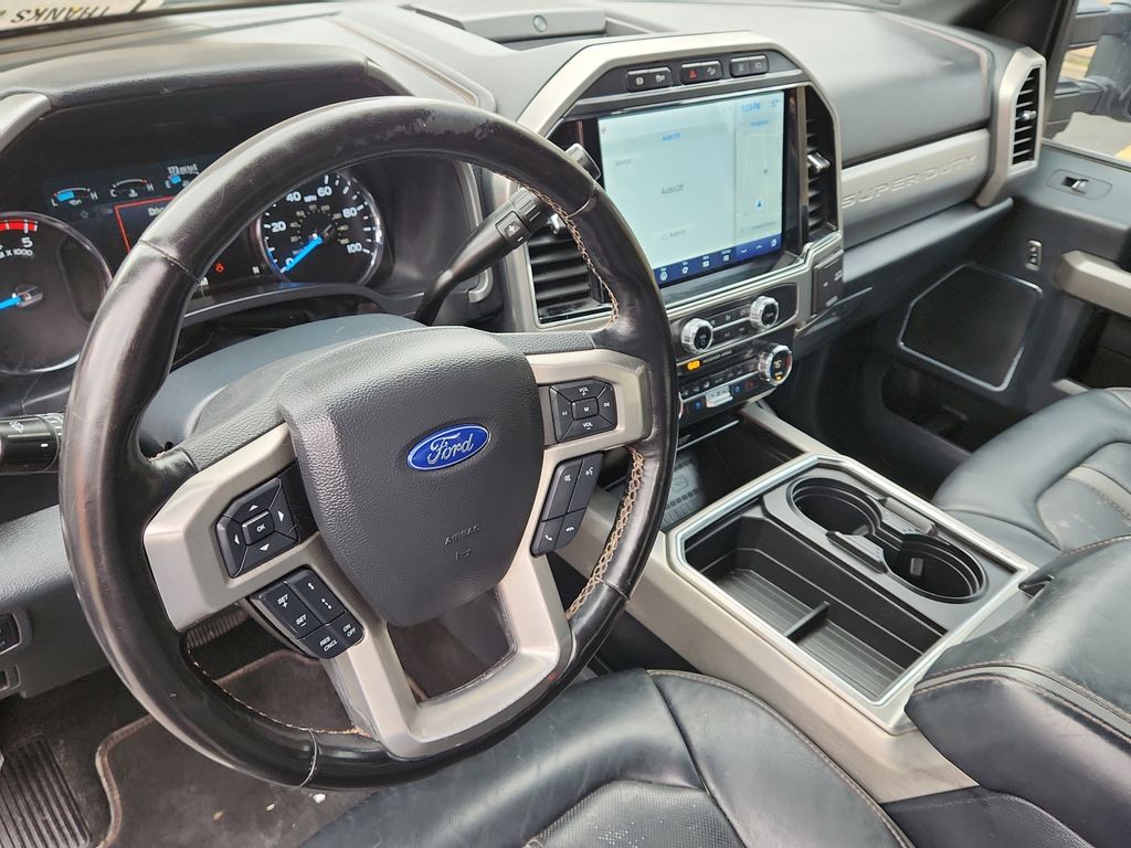Our Diesel powered 2022 Ford F-250 Platinum Crew Cab 4X4 puts premium capability and features together for your command in Star White! Motivated by a TurboCharged 6.7 Liter PowerStroke Diesel V8 offering 475hp and 1,050lb-ft of torque to a 10 Speed Automatic transmission. This Four Wheel Drive truck combines its brute strength with a clever Ultimate Trailer Tow Camera System so you can pull with brains and brawn. Bold and stylish, our Ford F-250 features Satin Aluminum accents, LED lighting, fog lamps, power running boards, alloy wheels, and a remote-release tailgate with a built-in step.