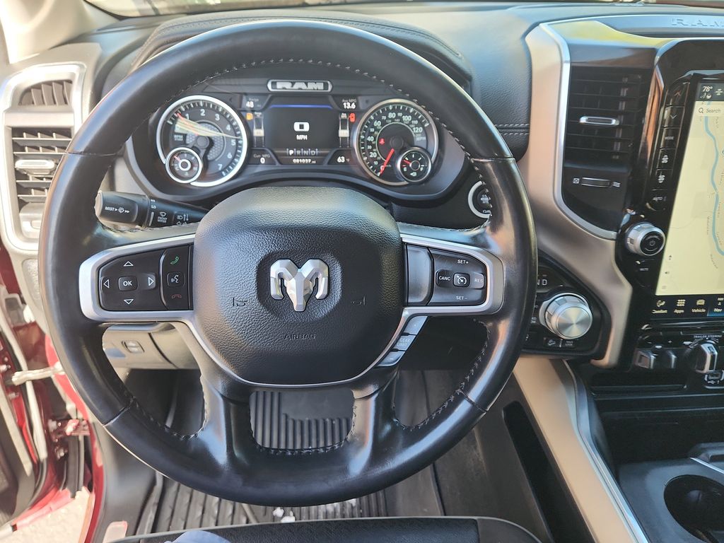 Our dealership has already run the CARFAX report and it is clean. A clean CARFAX is a great asset for resale value in the future. It has satellite radio capabilities. The leather seats in the vehicle are a must for buyers looking for comfort, durability, and style. You'll never again be lost in a crowded city or a country region with the navigation system on this Ram 1500. This Ram 1500 offers Apple CarPlay for seamless connectivity. It offers Android Auto for seamless smartphone integration. The rear parking assist technology on this unit will put you at ease when reversing. The system alerts you as you get closer to an obstruction. Start this unit from inside with remote start. The Ram 1500 offers Automatic Climate Control for personalized comfort. Bluetooth technology is built into the Ram 1500, keeping your hands on the steering wheel and your focus on the road.